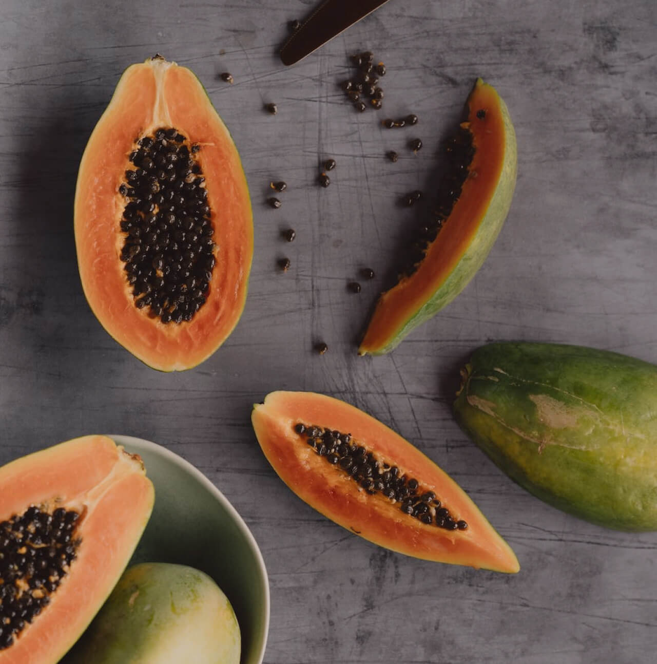 Запах папайи похож на сочную и сладкую смесь ананаса и персика, но более сливочный и нежный.